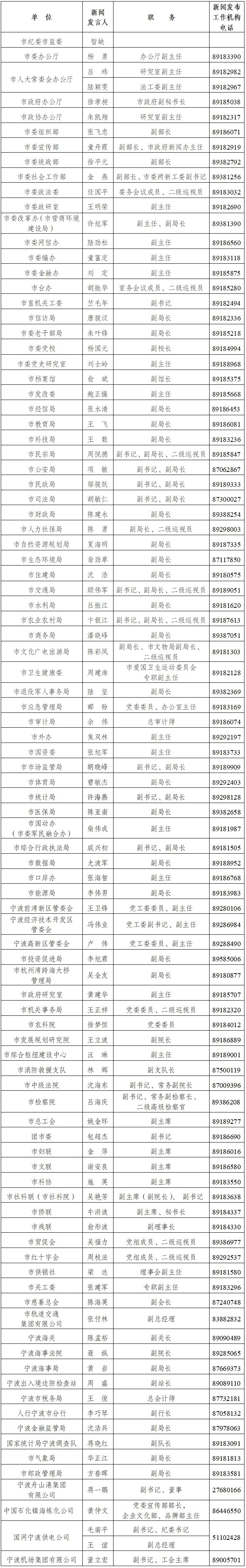 寧波市政府新聞發言人名單及新聞發布工作機構電話